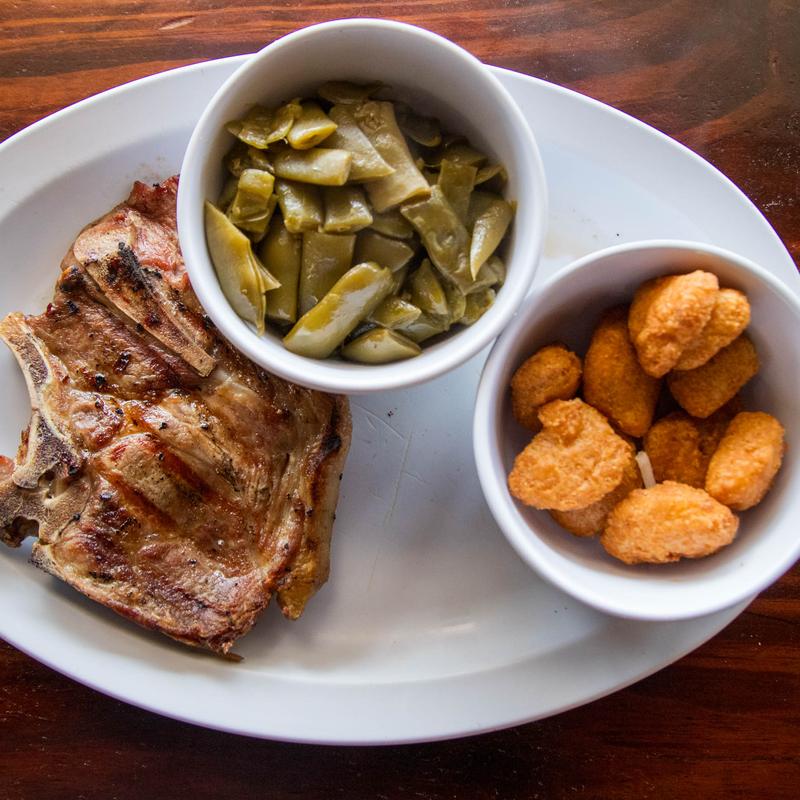 We proudly serve Certified Angus Beef brand steaks known for its superior quality, tenderness and flavor. Our steaks are hand-cut, perfectly seasoned, and grilled to your liking. Each plate is served with your choice of two sides and a roll or biscuit.